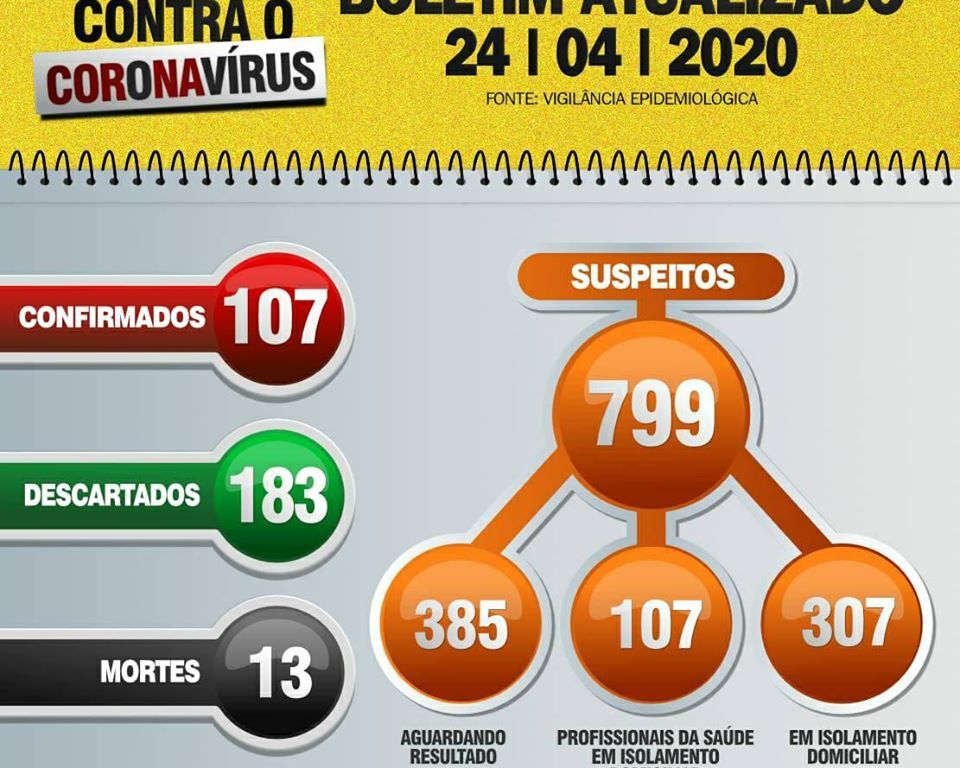 > Casos suspeitos por coronavírus: 799 pessoas, sendo que 385 pacientes aguardam o resultado dos exames, 307 estão em isolamento domiciliar e mais 107 profissionais de Saúde que também estão em quarentena;