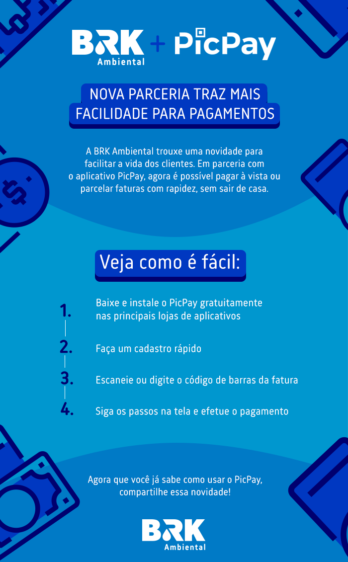 Para auxiliar os seus clientes e tornar ainda mais simples o pagamento das faturas de água e esgoto, a BRK Ambiental, concessionária responsável pelos serviços de esgoto em Mauá, anuncia a parceria com o aplicativo PicPay.