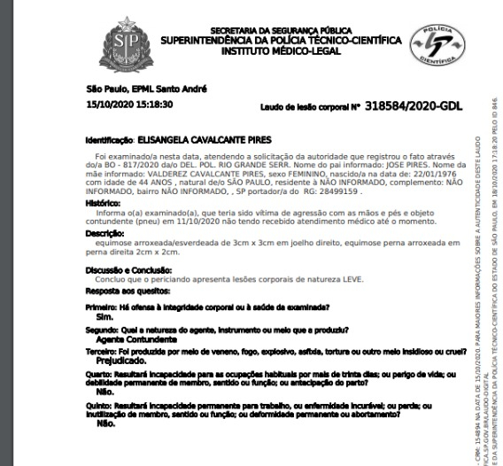 “Foi a pior coisa que já sofri em minha vida, eu pensei que eu fosse morrer surrada pelos valentões, mas agora vamos atrás de justiça, já fizemos o boletim de ocorrência e o exame de corpo delito, espero que outras pessoas não passem o que eu passei, só quero justiça, não podemos aceitar viver em uma cidade comandada pelos coronéis do velho cangaço”, disse Elisangela.
