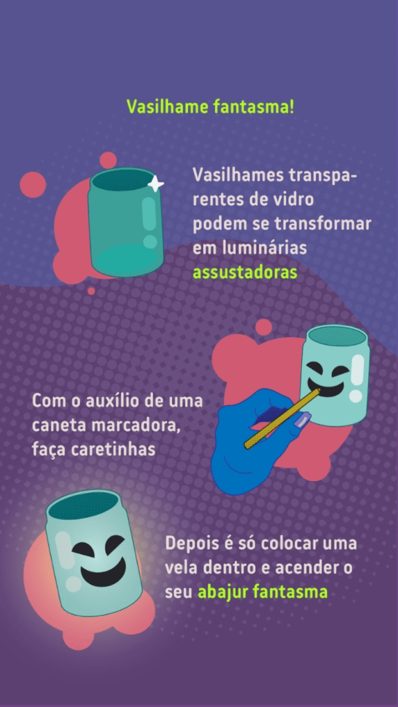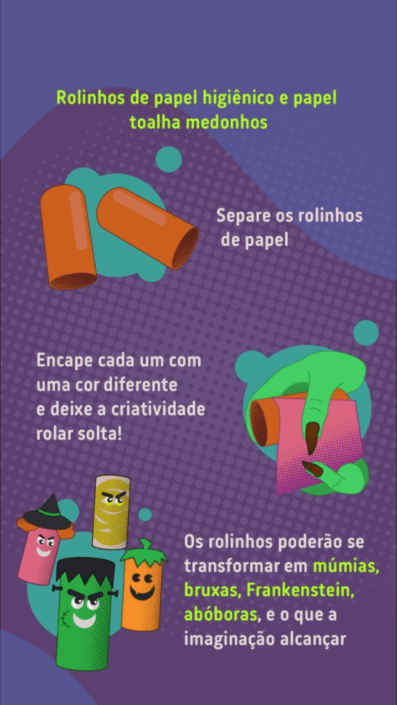 O Halloween está chegando! Que tal investir em ideias criativas e sustentáveis para deixar a sua casa no clima e realizar uma atividade divertida e consciente com a criançada?