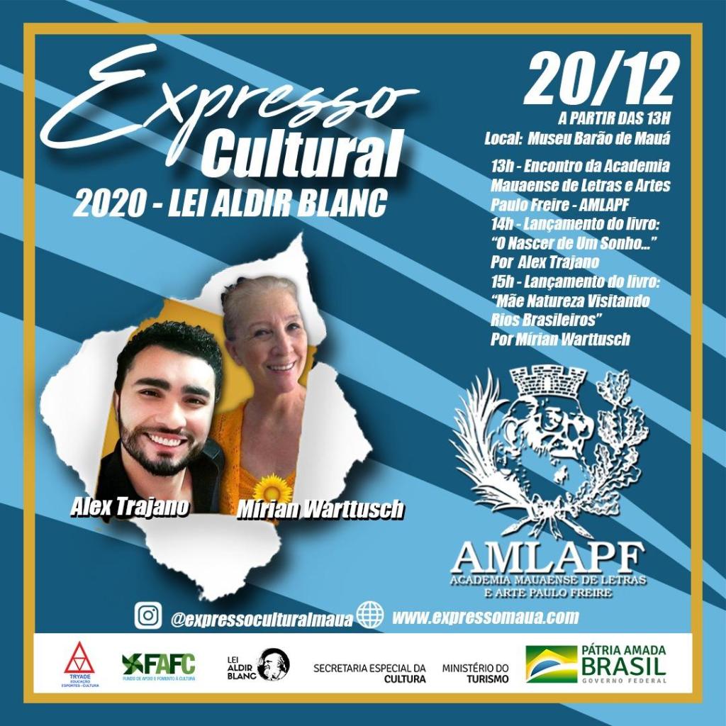 Às 14h será lançado o livro “O nascer de um sonho”, de Alex Trajano. Às 15h será lançado o livro “Mãe Natureza visitando os rios brasileiros”, de Mirian Warttusch.