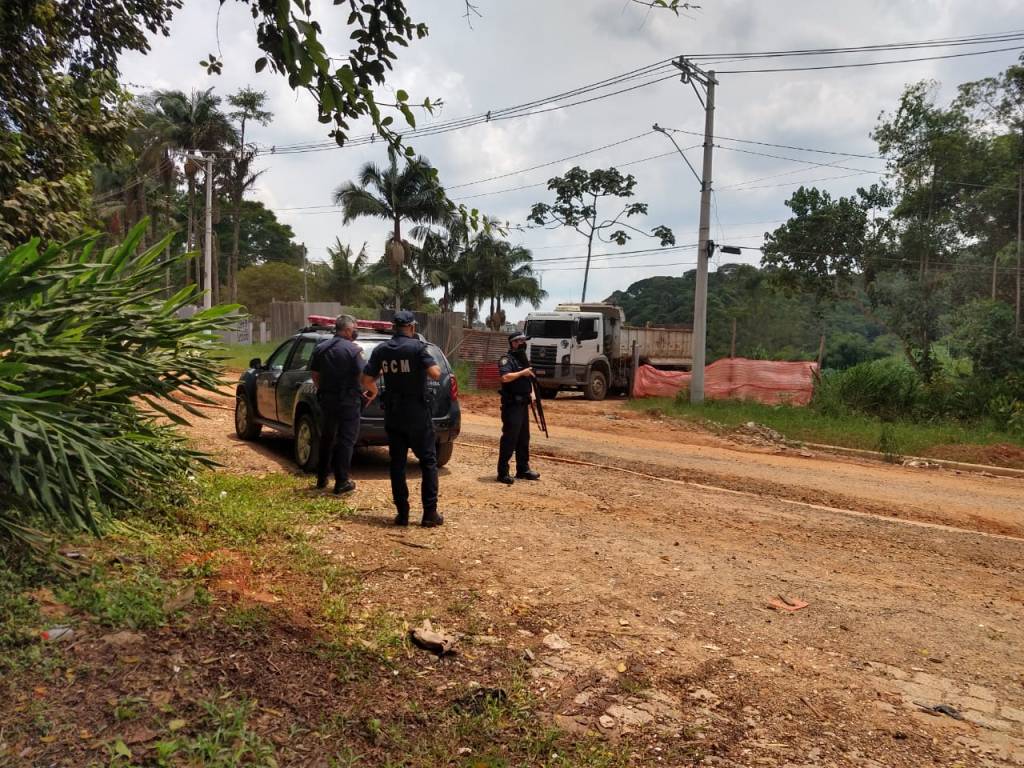 Pela manhã, a guarda patrulhava a região – que já tinha série de denúncias de descarte sem autorização – quando avistou um caminhão basculante branco, com placas de Mauá, descarregando terra em área próxima a um córrego. O terreno estava repleto de entulho, em sua maioria restos de construção civil.