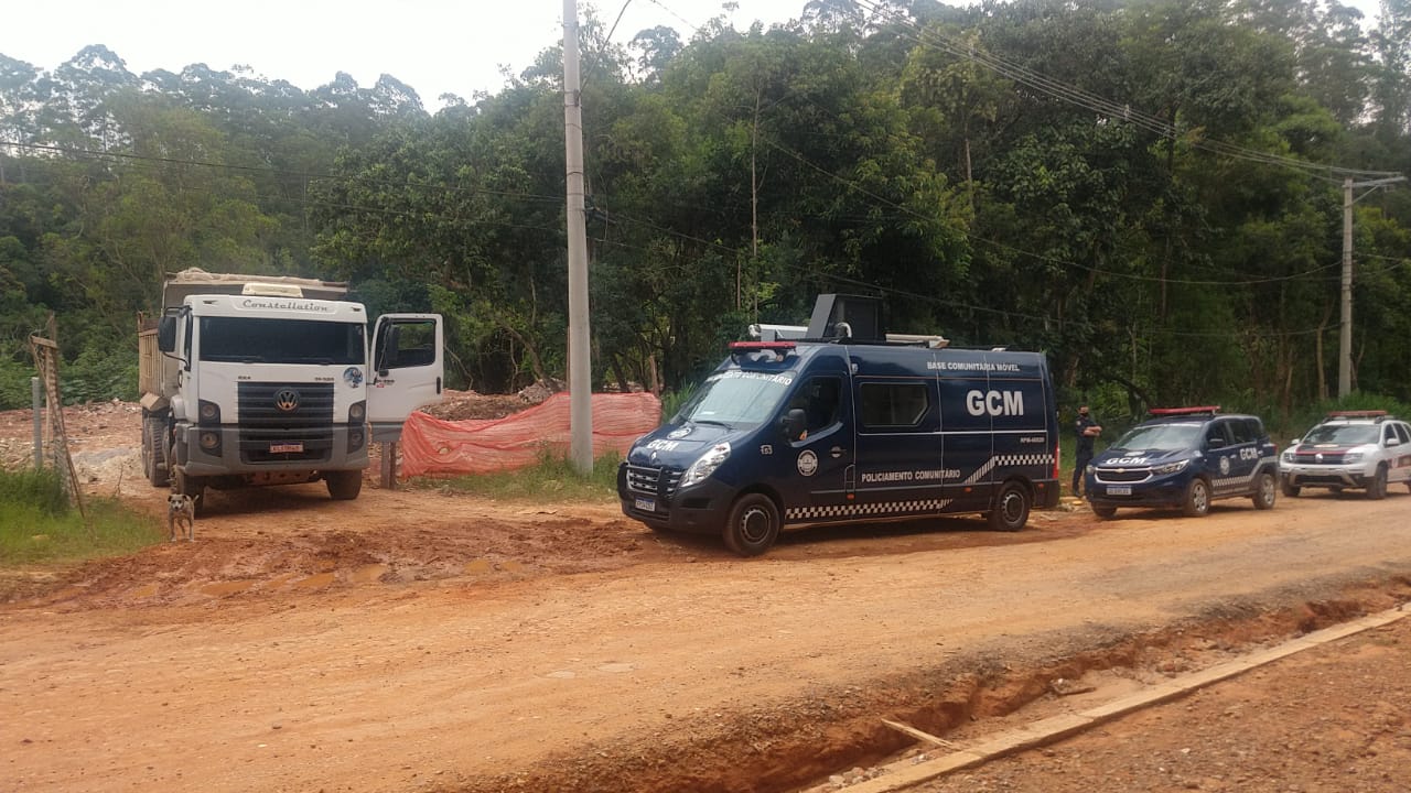 Pela manhã, a guarda patrulhava a região – que já tinha série de denúncias de descarte sem autorização – quando avistou um caminhão basculante branco, com placas de Mauá, descarregando terra em área próxima a um córrego. O terreno estava repleto de entulho, em sua maioria restos de construção civil.