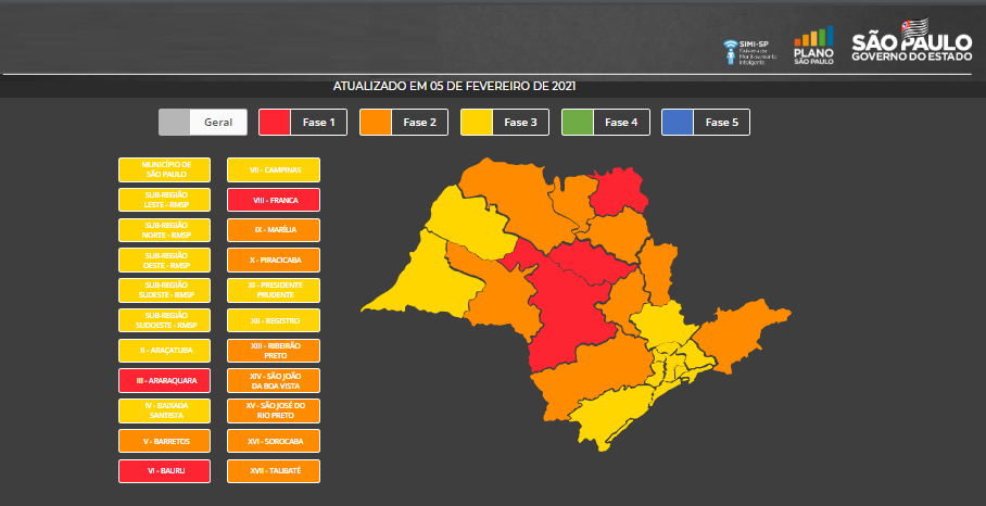 O Governo do Estado informou, nesta sexta-feira (5/2), a nova reclassificação do Plano São Paulo e avançou o Grande ABC da fase laranja (de controle) para a amarela (de flexibilização). A medida atende pedido feito pelo Consórcio Intermunicipal Grande ABC. Em ofício, a entidade regional destacou que as sete cidades possuem indicadores compatíveis para a mudança de faixa no plano de reabertura gradual da economia.