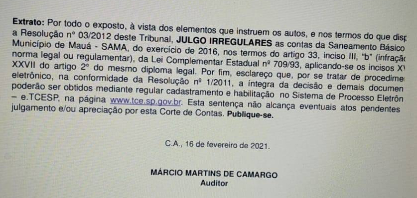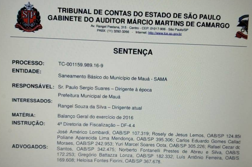 O ex-vereador pelo PT Paulo Suares teve suas contas rejeitadas pelo Tribunal de Contas do Estado, o processo compreende o Balanço Geral de 2016 quando ele foi superintendente da Sama. O prefeito era Donisete Braga do PT, hoje Donisete está filiado ao PDT.