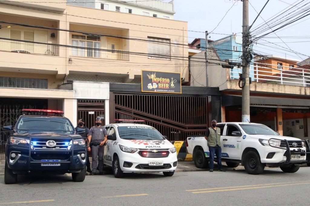 Na tarde desta segunda, a Prefeitura realizou oito interdições, todas de bares, localizados em bairros como Jardim Las Vegas, Jardim Santo André, Vila Curuçá, Vila Palmares e Vila Alzira. Além de estarem funcionando de maneira irregular, alguns dos estabelecimentos também registravam aglomeração.