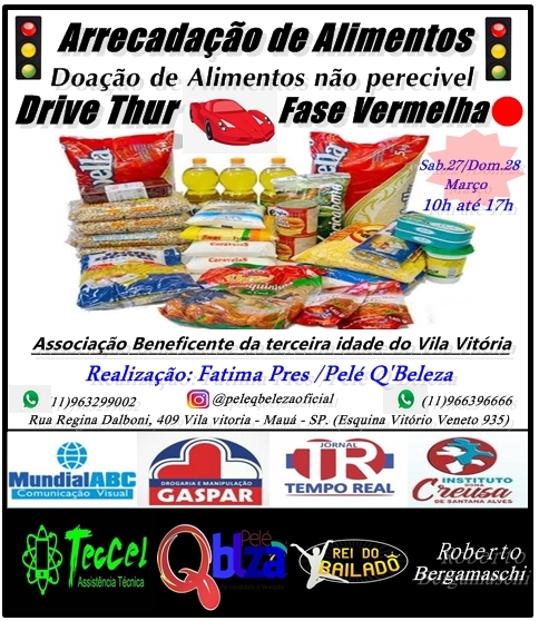 “Nós sabemos que esta fase de restrições infelizmente necessária, mas também está levando a fome para muitas famílias, muitas pessoas estão desempregadas e muitos empresários estão com dificuldade, então neste momento estamos realizando essa arrecadação de alimentos para ajudar ao próximo, conto com a ajuda de quem puder”, disse Douglas.