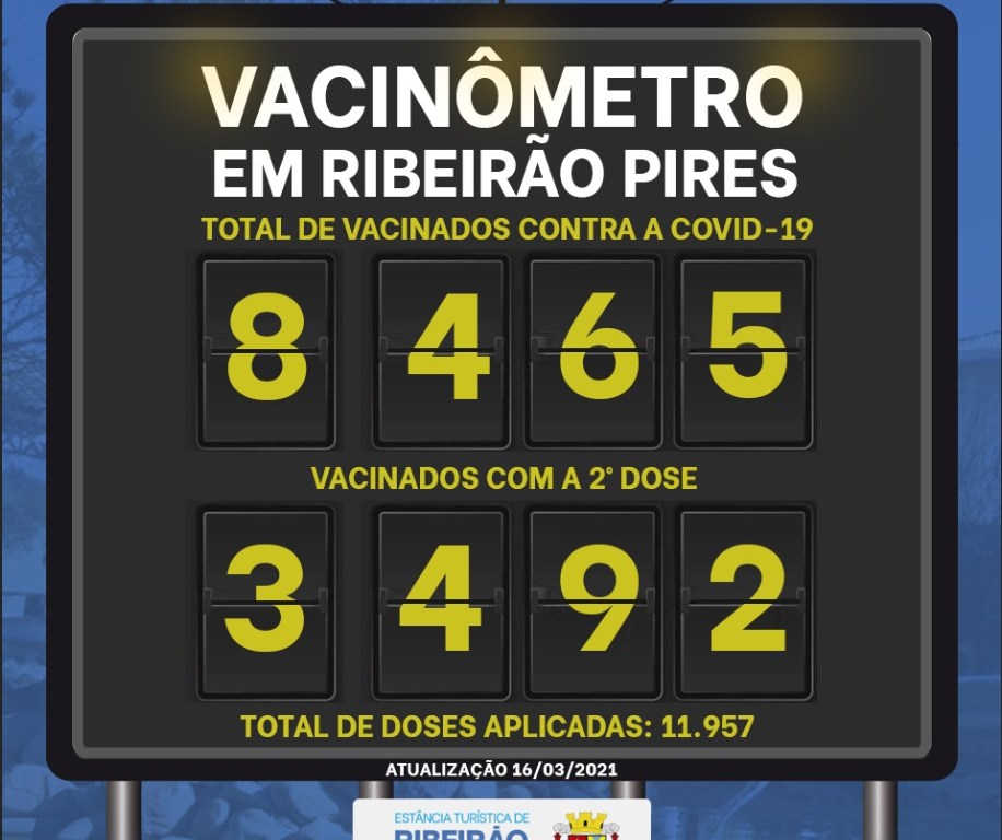 No 48° dia de imunização da campanha contra a Covid-19, 8.465 pessoas já foram vacinadas com a primeira dose na cidade de Ribeirão Pires.