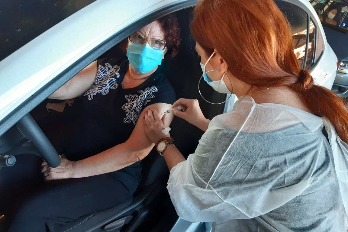 A Primeira Dama e Presidente do Fundo Social de Ribeirão Pires, Lígia Volpi, de 71 anos, recebeu na manhã da última terça-feira, 23, a primeira dose da vacina contra a Covid-19 no Drive Thru do Complexo Ayrton Senna. Na ocasião, ela agradeceu aos profissionais de saúde pelo trabalho e ressaltou a importância da imunização para todos.