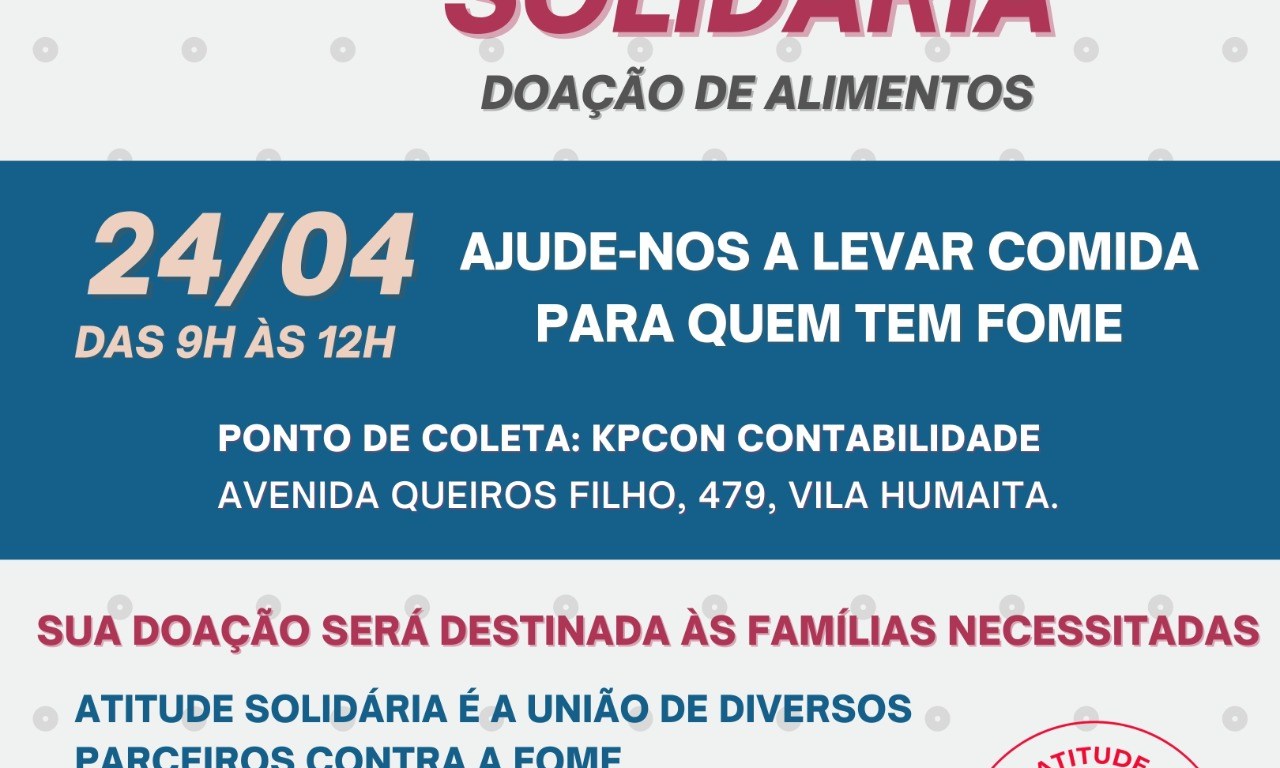 O dia “D” da arrecadação será sábado (24/04), das 9h às 12h na Kpcon Contabilidade – Avenida Queiros Filho, 479, Vila Humaita.