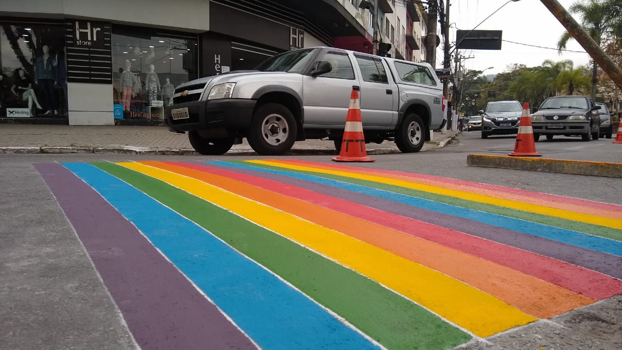 Entre as ações, estão uma faixa de pedestre pintada com as cores da bandeira LGBT e um banner de três metros com mensagens de apoio à comunidade.
