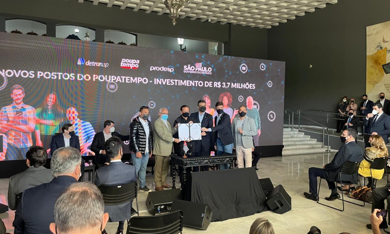 O governo do Estado anunciou há pouco que Ribeirão Pires será contemplado com uma unidade do Poupatempo. Articulado pelo deputado estadual, Thiago Auricchio, o equipamento funcionará no prédio do Detran (rua Primeiro de Maio, 65). “Será um grande avanço para a nossa cidade e para a região”, celebrou o prefeito Clóvis Volpi, que compareceu à cerimônia no Palácio dos Bandeirantes. Também estiveram presentes o vice-prefeito, Amigão D’orto e presidente da Câmara Municipal, Guto Volpi.