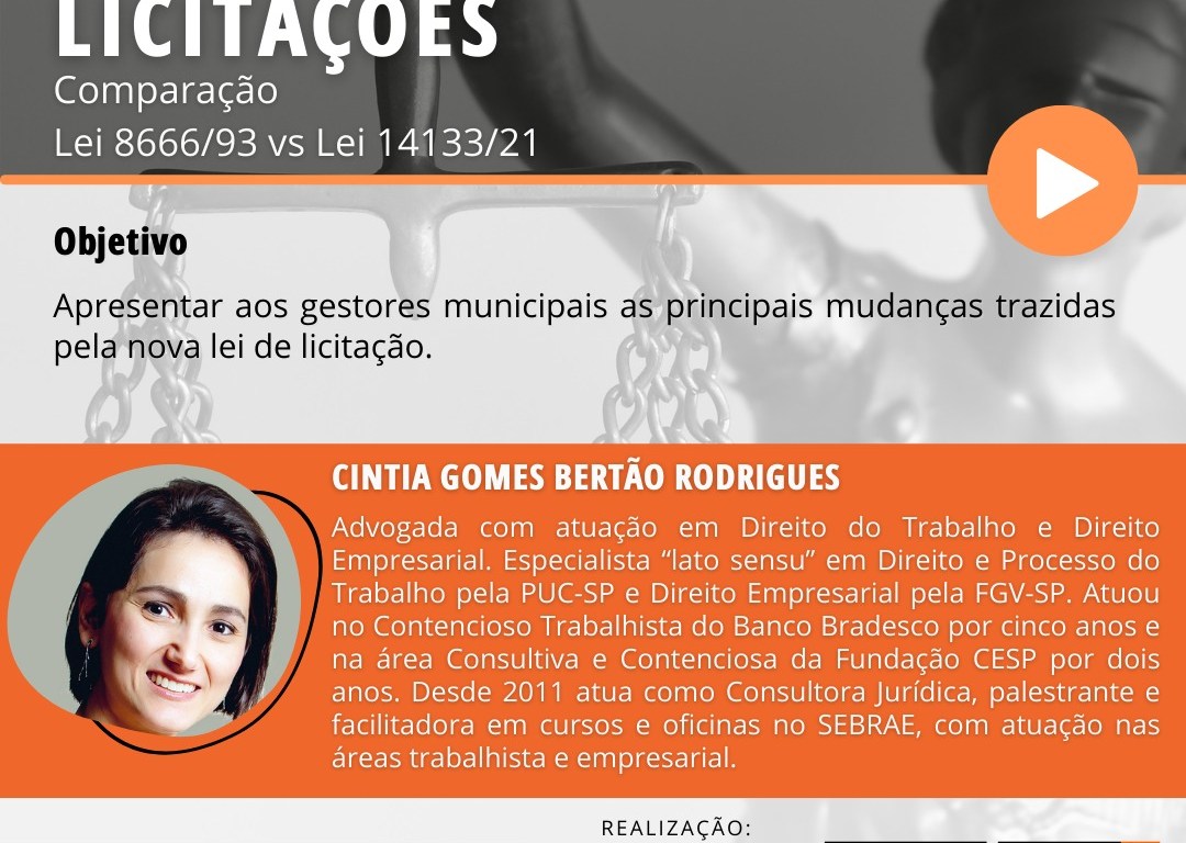 O objetivo é apresentar aos gestores municipais a nova norma, princípios, mudanças em relação à Lei 8.666/1993 e as principais implicações nos processos e procedimentos para contratações públicas nos municípios.