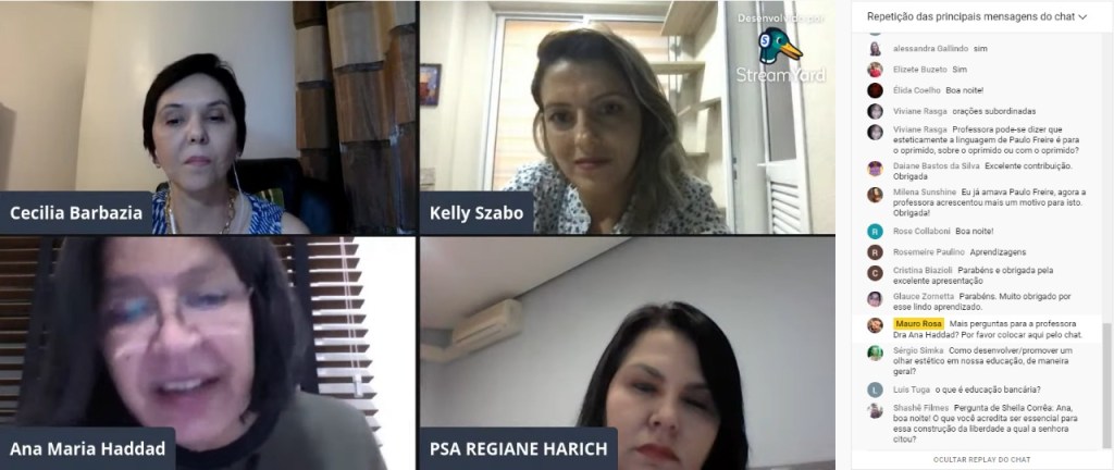 “A primeira Semana Paulo Freire foi um período de muito aprendizado e reflexão sobre o legado do importante educador brasileiro. Com aproximadamente 3.500 acessos, consideramos o evento um grande sucesso, premiando o lindo trabalho realizado por todos os setores da rede municipal de ensino. Para quem não pôde acompanhar, o link para assistir todo o conteúdo ficará disponível na página do Facebook do Centro de Formação de Professores Clarice Lispector”, concluiu Cecilia Barbazia, coordenadora de serviços educacionais do Centro de Formação de Professores Clarice Lispector.