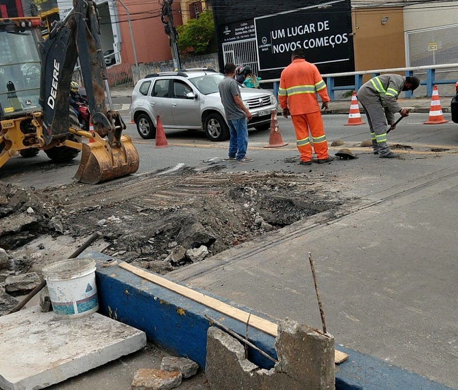 A Prefeitura de Mauá enviou uma força-tarefa ao Viaduto Prefeito Elio Bernardi (popularmente conhecido como Viaduto da Saudade) para resolver um problema de afundamento na via.