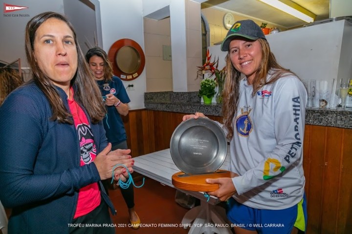 A dupla Juliana Duque e Mila Beckerath (YCB) ficou com o título do Troféu Marina Prada 2021, evento da classe Snipe realizado neste fim de semana, 2 e 3 de outubro, no Yacht Club Paulista (YCP), em São Paulo (SP). A competição serviu de esquenta para o Mundial Feminino da classe, que tem início na quarta-feira (6), na mesma raia da Represa do Guarapiranga, e vai até o dia 9. Ao todo 34 duplas participaram do campeonato de vela 100% para mulheres.