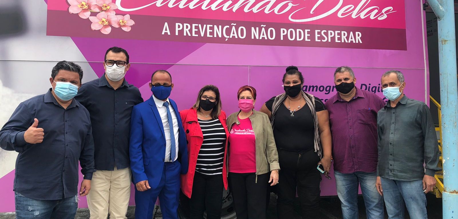 A vice-prefeita de Rio Grande da Serra, Penha Fumagalli (PTB), e nove vereadores da cidade conquistam mais 120 atendimentos no Ônibus da Mamografia após alta demanda durante a realização da campanha.