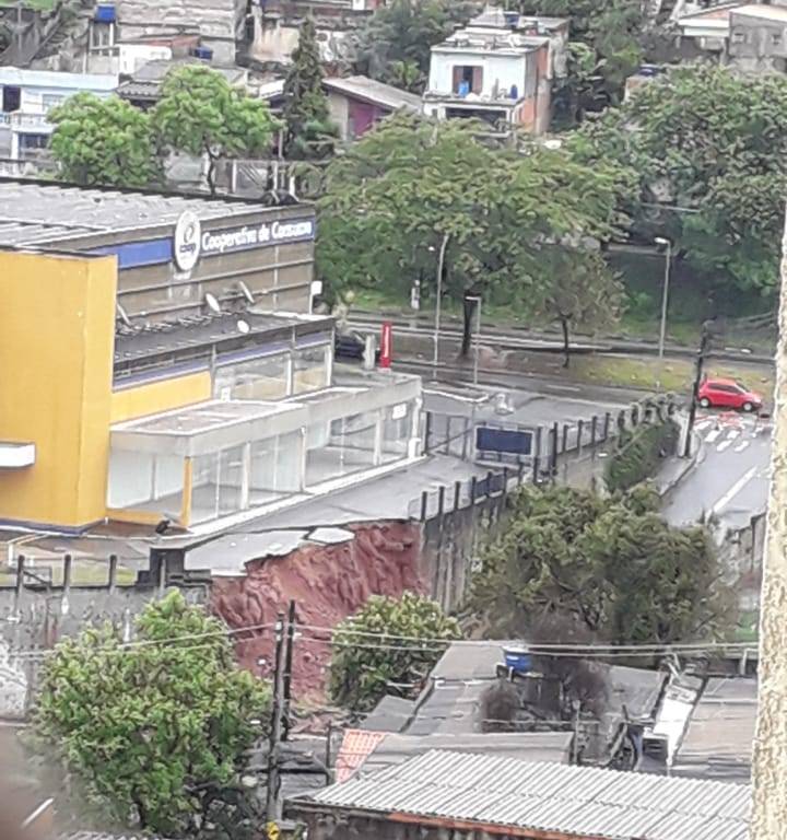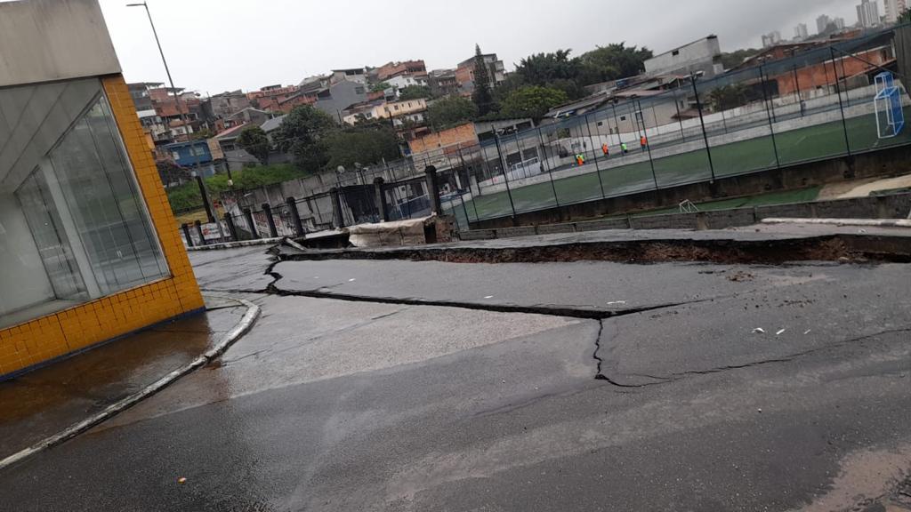 Chuvas intensas causaram rachaduras, erosão e rua paralela teve que ser interditada