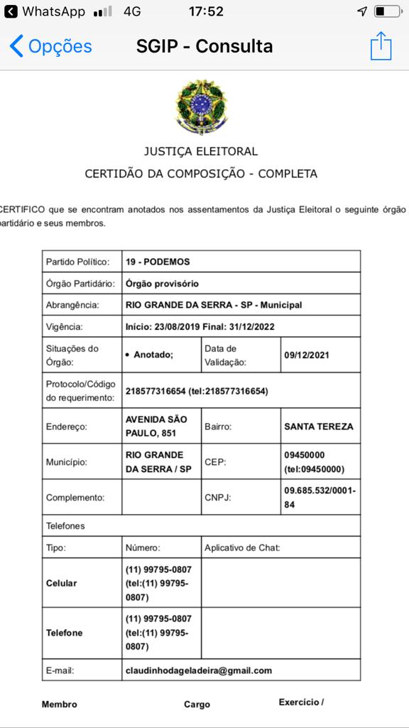Agora surgiu mais uma situação levantada pelos pesquisadores de plantão. Claudinho da Geladeira (PSDB) estaria presidindo o partido (Podemos) de Rio Grande da Serra. Nos bastidores não sabem se isso acarretará algum tipo de problema, mas deu um nó na cabeça de quem segue o mandatário pelas ideias políticas, ele saiu do PT, foi para o Podemos e se filiou ao PSDB, mas continua como presidente do Podemos. Qual discurso seguir? Com que roupa eu vou?