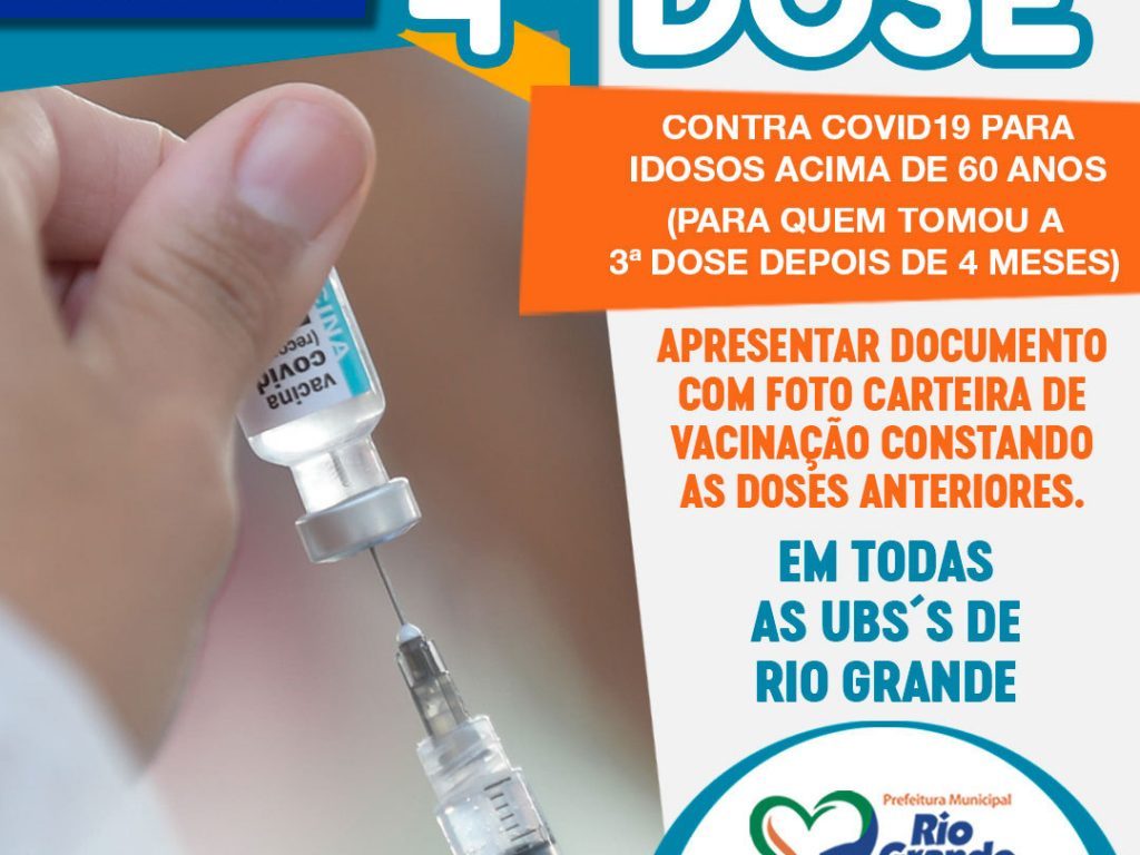 A vacinação contra a COVID-19 para pessoas com 60 anos ou mais receberem a 4ª dose. A imunização começou na terça-feira (5) de abril. Poderão se vacinar aqueles que tenham tomado a 3 doseª há mais de 4 meses.