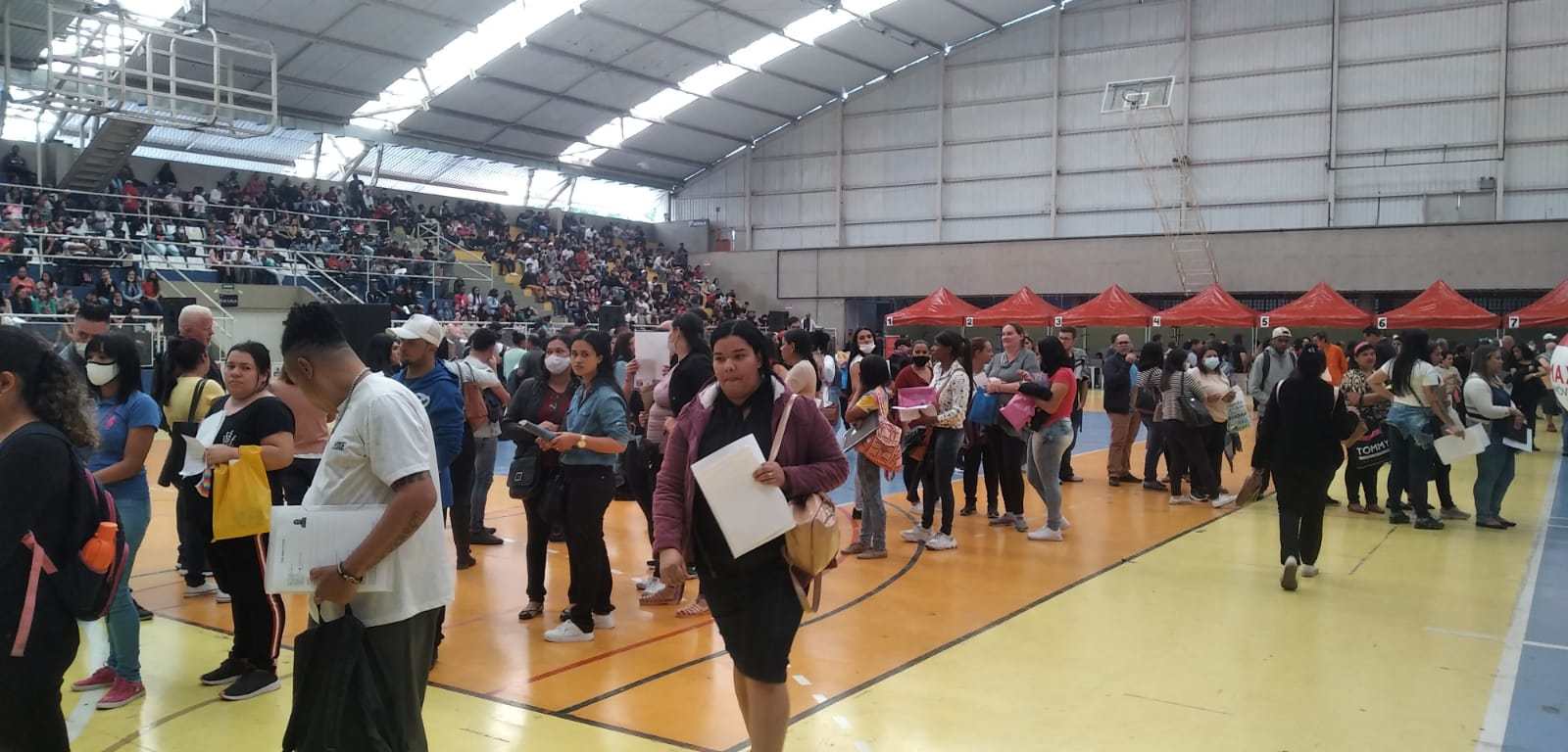 O ‘Feirão do Trabalho, Emprego e Renda de Mauá’ foi realizado no Ginásio Poliesportivo Celso Daniel, das 9h às 13h — todos os munícipes que chegaram até esse horário foram atendidos. A fila começou a se formar no fim da noite anterior, ainda na quinta-feira (26/05).