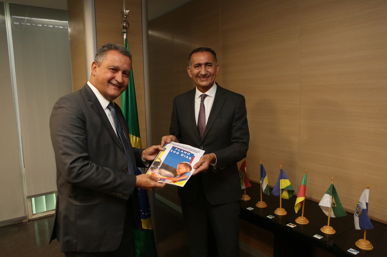 O ministro da Integração e do Desenvolvimento Regional, Waldez Góes, recebeu, nesta quinta-feira (19), o ministro-chefe da Casa Civil da Presidência da República, Rui Costa. O encontro foi destinado a alinhar as pautas prioritárias do Ministério para os primeiros 100 dias de governo do presidente Luiz Inácio Lula da Silva. Durante a reunião, foi apresentado um plano de ações para o período.