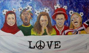 A obra foi produzida usando a técnica de tinta acrílica e retrata as torcidas unidas, com uma única bandeira, onde todas as nossas diferenças são eliminadas. “Quando nos despimos de todo tipo de preconceito, deixamos as nossas emoções irradiar das mais diversas formas, neste sonho de um mundo melhor.”