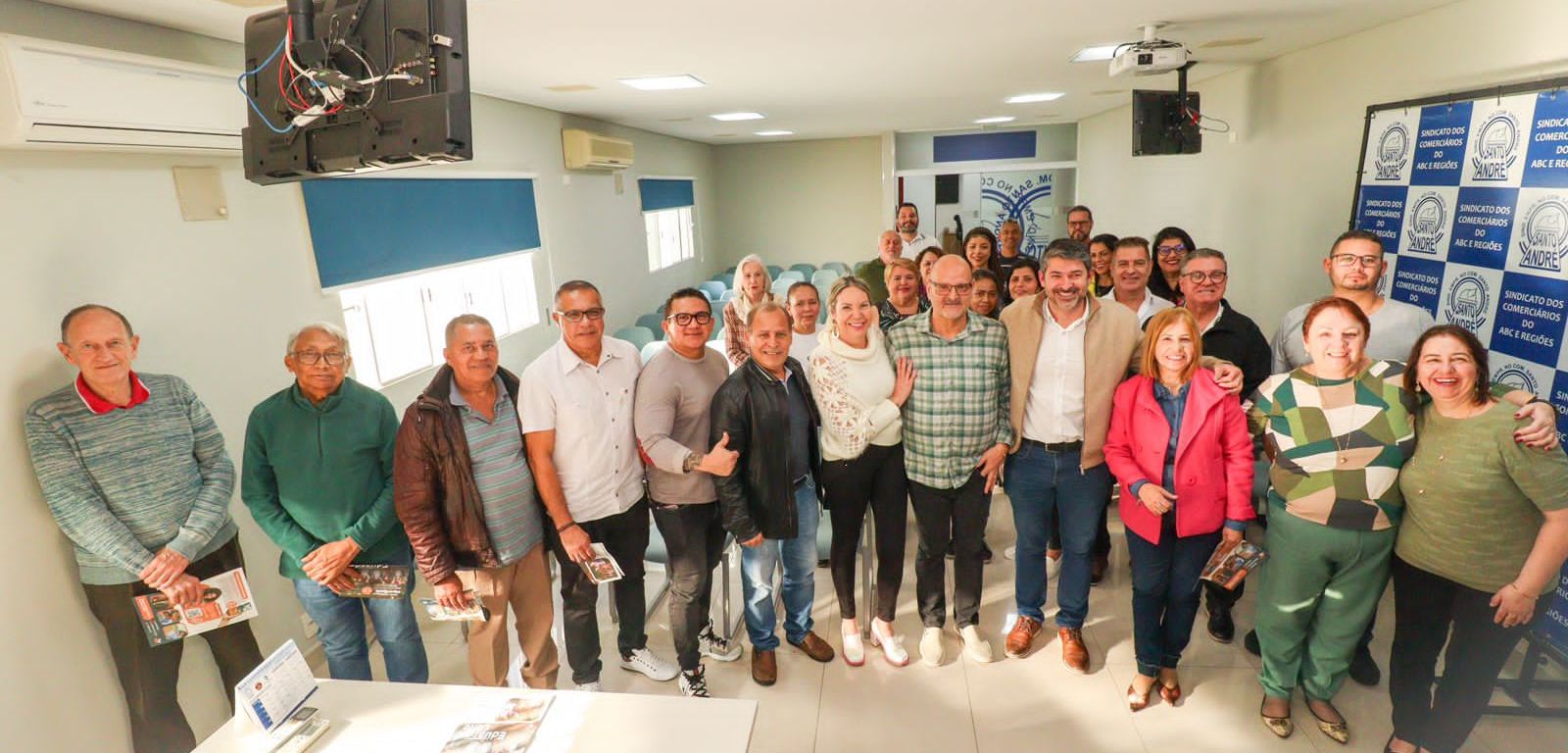 Nesta segunda-feira (22), o pré-candidato a prefeito de Santo André Eduardo Leite (PSB) participou de encontro com representantes do SECABC (Sindicato dos Comerciários do ABC). O objetivo foi escutar e debater propostas complementares ao seu programa de de governo na área de desenvolvimento econômico e comércio da cidade.