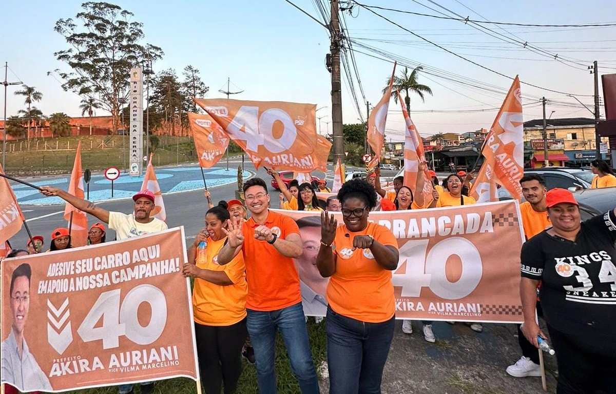Nesta sexta-feira (16), primeiro dia de campanha eleitoral, o candidato a prefeito em Rio Grande da Serra, Akira Auriani (PSB), participou de mobilização em ruas da cidade, na Arrancada 40. Acompanhado de sua vice, Vilma Marcelino (PSDB), e de apoiadores, o candidato realizou ação para adesivar carros com as marcas de campanha, na principal rotatória do município.