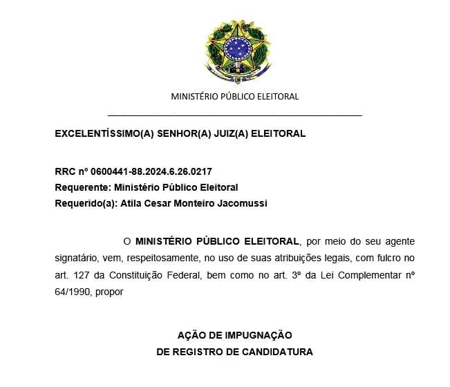 O caso agora segue para análise da Justiça Eleitoral, que terá a responsabilidade de decidir se acata ou não o pedido de impugnação. Se a candidatura de Jacomussi for impugnada, ele poderá ainda recorrer ao Tribunal Regional Eleitoral (TRE) e ao Tribunal Superior Eleitoral (TSE), prolongando a disputa judicial até o período próximo às eleições.