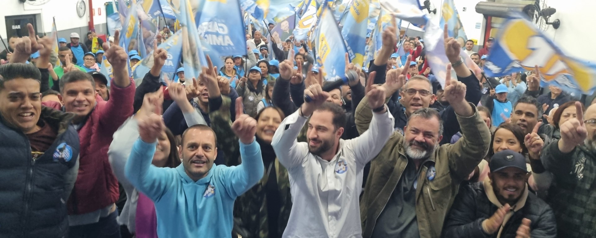 Houve muita festa, músicas de campanha, mascote e dança, por parte dos apoiadores que, antes, ouviram atentos as propostas que o candidato a prefeito Gabriel Roncon quer implementar em Ribeirão Pires.