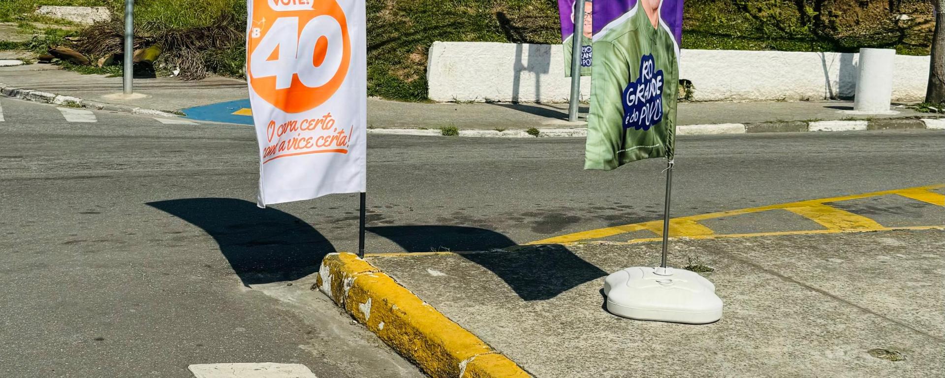 O juiz eleitoral André Luiz Rodrigo do Prado Nórcia determinou que a campanha do candidato a prefeito de Rio Grande da Serra Akira Auriani (PSB) pare, imediatamente, de promover propaganda irregular na cidade com a remoção de seus materiais de divulgação (windbanner) fixados no chão, sem a base. De acordo com o juiz a prática do candidato socialista está em desacordo com a legislação .