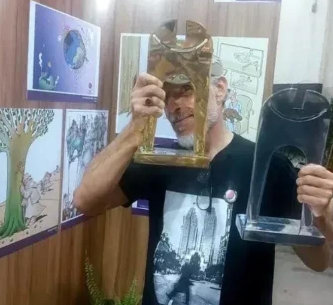 A premiação, realizada no último sábado (31), reuniu 229 artistas de 23 países, com 453 trabalhos inscritos nas categorias charge, caricatura, tiras/HQ e esculturas. A peça vencedora de Gilmar, publicada originalmente em 2019 em suas redes sociais, aborda questões ambientais no Brasil, destacando o impacto das políticas do primeiro ano da gestão Bolsonaro. “Fiquei muito surpreso com essa vitória, que veio num momento importante para minha carreira e minha vida”, comentou o artista.