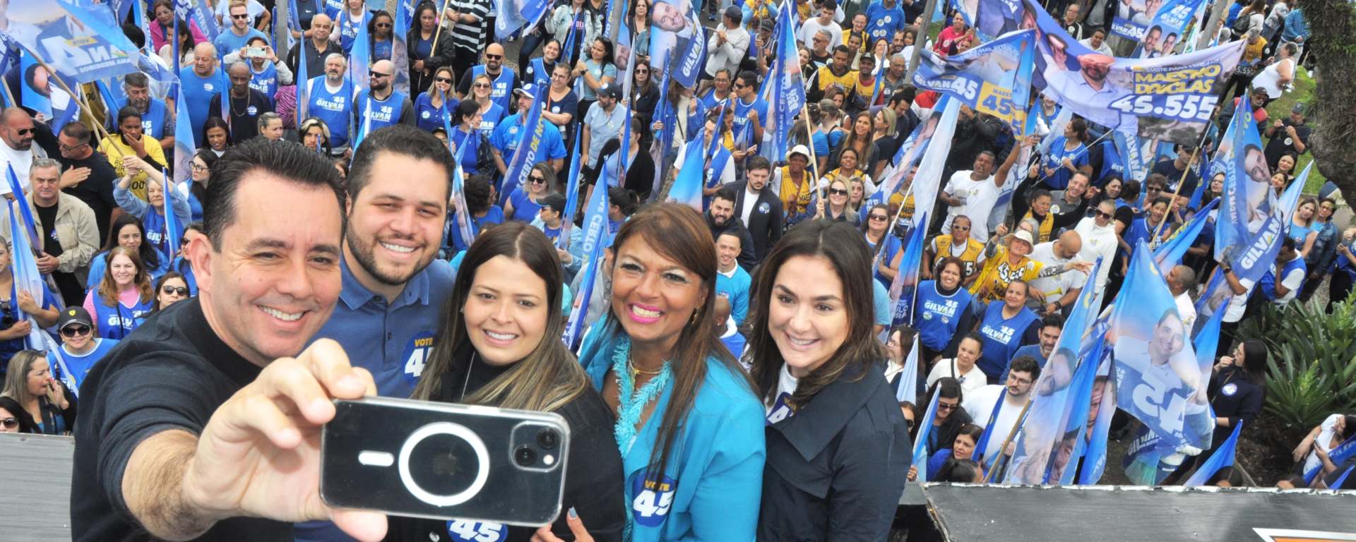 A primeira-dama e deputada estadual Ana Carolina Serra agradeceu o apoio da população. “Muito lindo ver esse tanto de gente que apoia o nosso projeto. Uma verdadeira onda azul que cobriu essa cidade. Estamos muito confiantes em decidir essa eleição no primeiro turno”, discursou Ana Carolina.