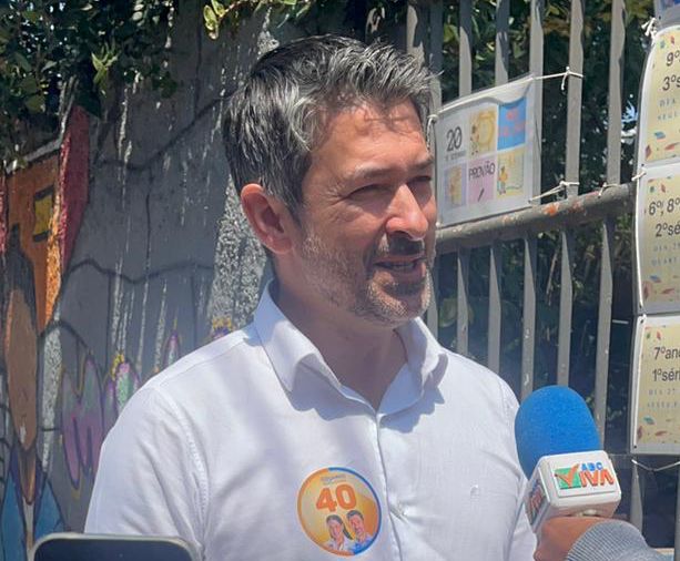 Eduardo Leite acaba de votar, na companhia dos filhos Luiz e João. Mais cedo, tomou café com a vice, Dra Fabiana Marangoni, e com o deputado federal Fernando Marangoni (União Brasil) na tradicional Padaria Brasileira.