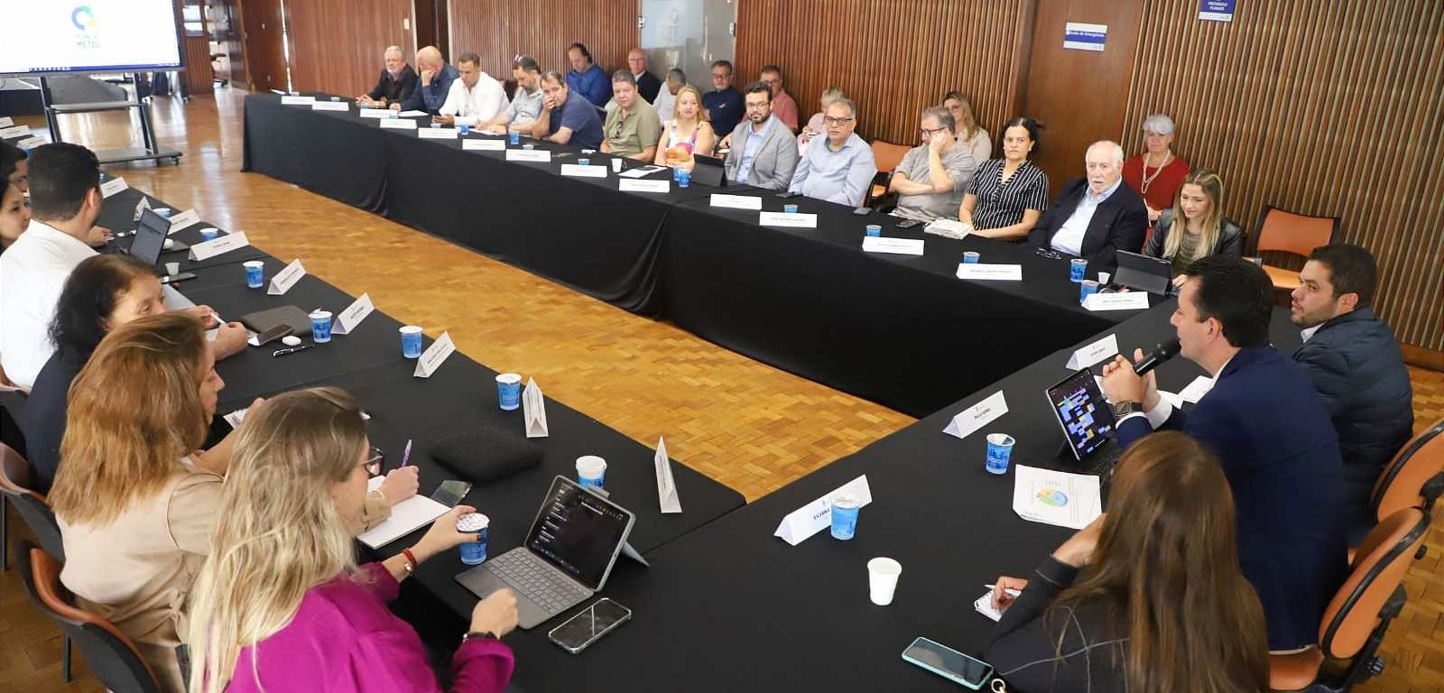 O prefeito Paulo Serra reuniu nesta terça-feira (15) todos os secretários municipais para apresentar o Plano de Metas para 2025. Entre os convidados estavam também Gilvan, que foi eleito prefeito e assume o comando do Paço andreense a partir de janeiro, e Silvana Medeiros, eleita vice-prefeita. A reunião já faz parte do plano de transição do governo.