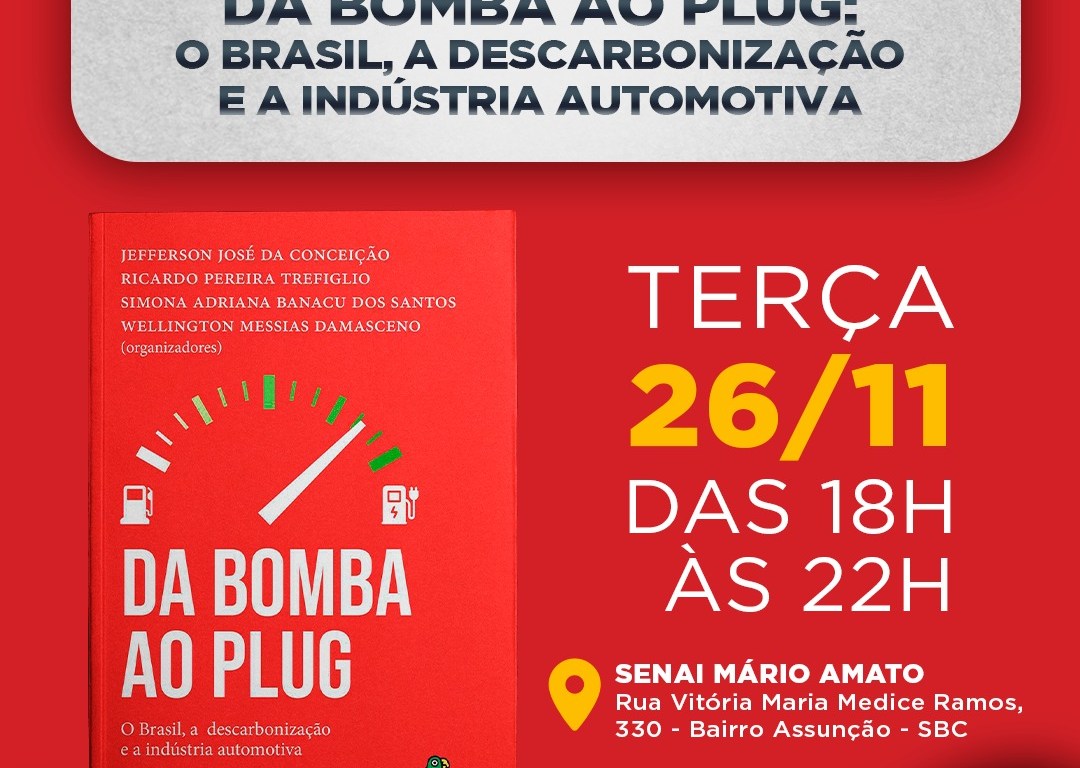 O diretor administrativo do Sindicato dos Metalúrgicos do ABC, Wellington Messias Damasceno, em conjunto com os professores da USCS (Universidade Municipal de São Caetano do Sul) Jefferson José da Conceição, Ricardo Pereira Trefiglio e Simona Adriana Banacu dos Santos, lança o livro “Da Bomba ao Plug: o Brasil, a descarbonização e a indústria automotiva”, no próximo dia 26 de novembro, a partir das 18h, no Senai Mário Amato, em São Bernardo do Campo.