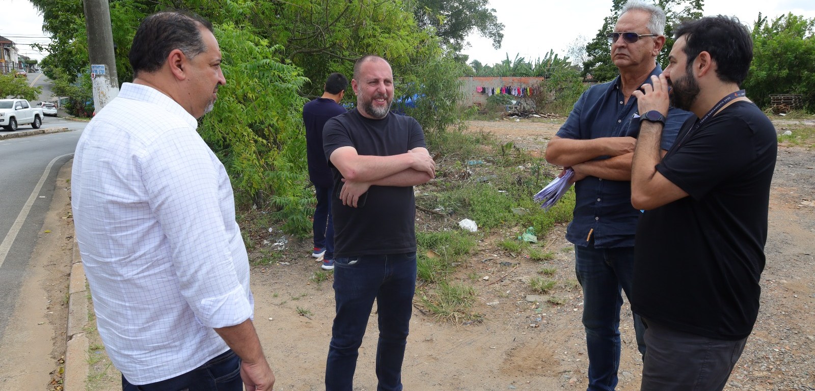 O prefeito Marcelo Oliveira, acompanhado dos secretários de Serviços Urbanos, Leandro Dias e de Obras, José Luiz de Macedo, visitou nesta terça-feira um terreno na rua Oscarito, onde será construído o ecoponto do Jardim Sonia Maria.