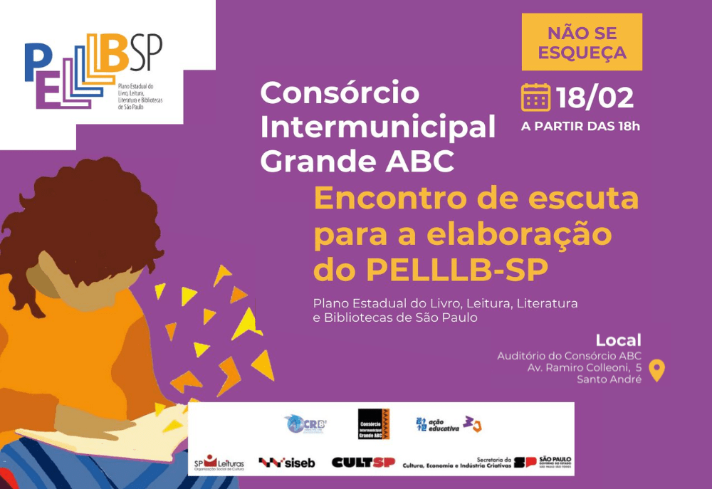 O Consórcio Intermunicipal Grande ABC promove, na próxima terça-feira (18/2), um encontro sobre a elaboração do Plano Estadual do Livro, Leitura, Literatura e Bibliotecas do Estado de São Paulo (PELLLB-SP). O objetivo do evento no Grande ABC é receber contribuições da sociedade civil e de todos os atores envolvidos com a temática na região.