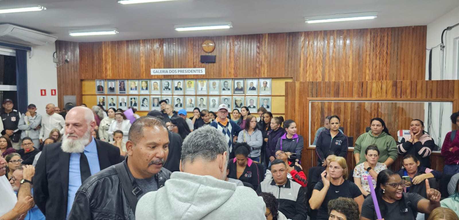 Na Sessão Ordinária desta quarta-feira (14), professores da Rede Municipal de Ensino de Rio Grande da Serra ocuparam as dependências da Câmara Municipal em protesto por reajuste salarial. A manifestação ocorreu no mesmo dia em que os vereadores devem votar o projeto que prevê um aumento de 4% nos vencimentos dos servidores, além da concessão de um auxílio de R$ 300 para aqueles que recebem até R$ 2.100.