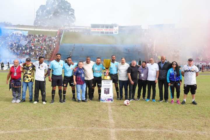A festa foi bonita. Tudo transcorreu bem. O clima de paz e fair play prevaleceu. As duas torcidas marcaram presença e coloriram as arquibancadas do Estádio Pedro Benedetti. O espaço reservado para ambas foi completamente tomado. O prefeito Marcelo Oliveira deu boas-vindas aos finalistas e conduziu as equipes até o gramado.