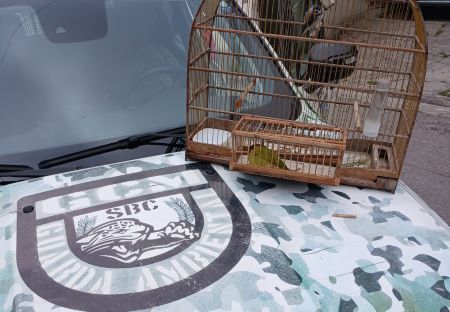 Ao ser acionada, a Guarda, rapidamente, se deslocou até o local, conhecido como “viela da represa”, onde encontrou um homem ao lado de uma gaiola equipada com alçapão, utilizando um coleirinho como isca para atrair outros pássaros. Com a abordagem, ele admitiu que a armadilha era de sua responsabilidade, dizendo tratar-se de um “hobby” e que pretendia capturar mais aves silvestres.