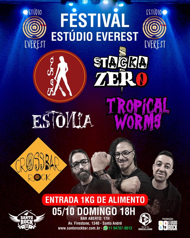 Este evento contará com 5 bandas e além de arrecadar alimentos, é uma homenagem em memória ao Dirceu, fundador do Estúdio Everest.