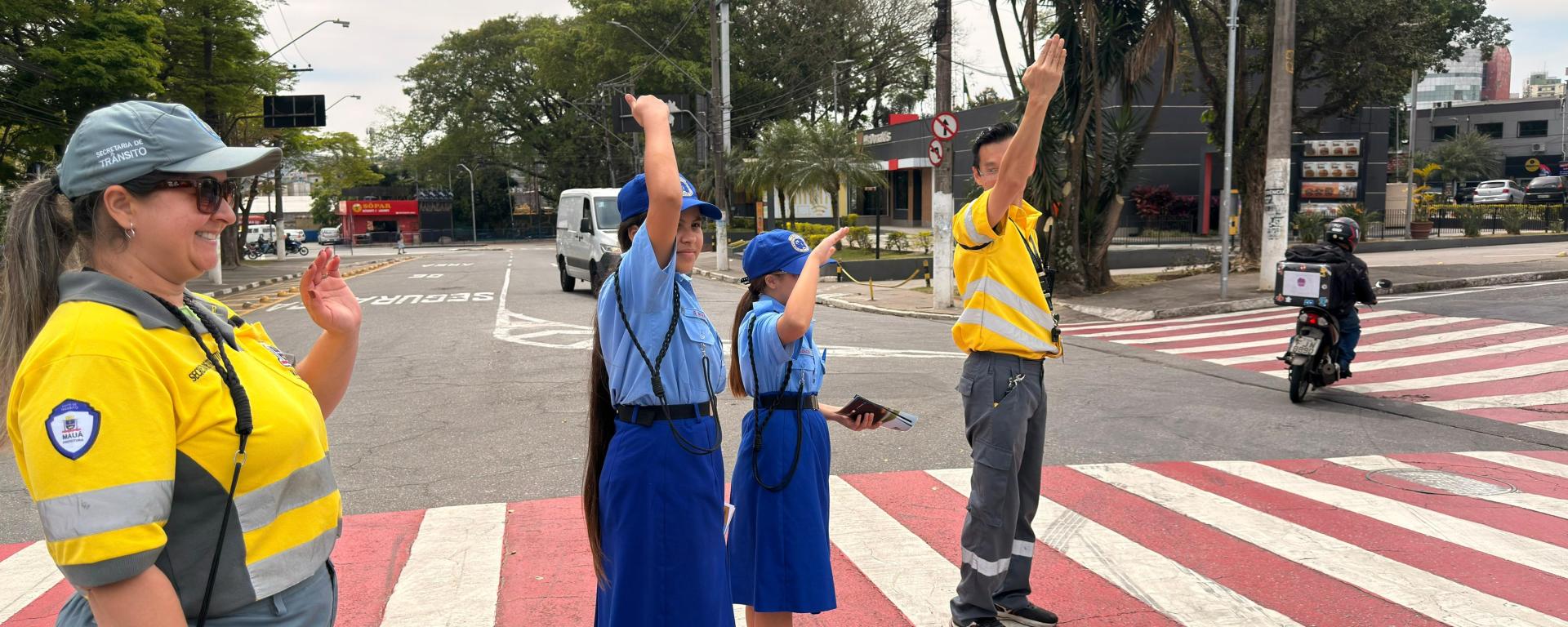 A Prefeitura de Mauá, por meio da Secretaria de Mobilidade Urbana, realizou nesta quinta-feira (19/09) mais uma atividade da Semana Nacional do Trânsito 2025. A ação contou com a participação dos integrantes da Guarda Mirim de Mauá, que, sob orientação dos agentes de trânsito municipais, contribuíram para conscientizar a população sobre a importância da travessia segura nas faixas de pedestres.