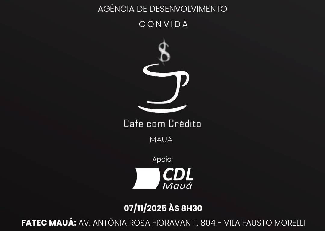 No próximo dia 07 de novembro, à partir das 8h30, a Agência de Desenvolvimento Econômico do Grande ABC promove em Mauá mais uma edição do Café com Crédito, conjuntamente com a Prefeitura de Mauá, através da Secretaria de Desenvolvimento Econômico e com o apoio institucional da CDL MAUÁ.