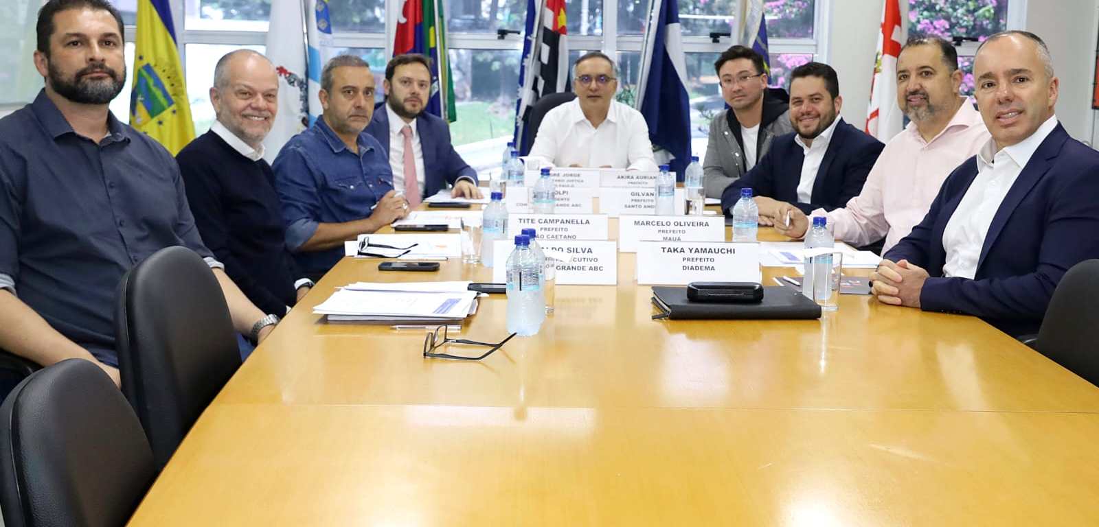 A reunião mensal do órgão intermunicipal contou com a presença do presidente do Consórcio ABC e prefeito de São Bernardo do Campo, Marcelo Lima; dos chefes dos Executivos municipais de Santo André, Gilvan Ferreira; de São Caetano do Sul, Tite Campanella; de Mauá, Marcelo Oliveira; de Ribeirão Pires, Guto Volpi; e de Rio Grande da Serra, Akira Auriani.