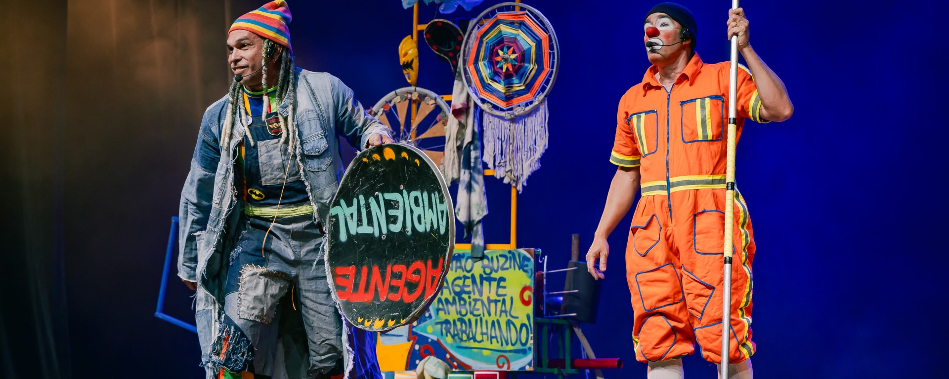 Apresentado de forma lúdica e poética, “Reciclown Circus” traz em cena dois personagens centrais: um gari e um catador de recicláveis. O diálogo entre eles provoca crianças e adolescentes a refletirem sobre a produção de resíduos, o consumo cotidiano, a separação e reaproveitamento de materiais – sempre com humor e linguagem acessível.