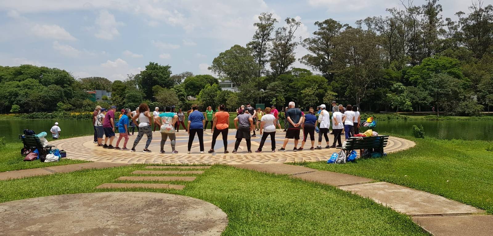 A atividade de encerramento foi escolhida em conjunto com os idosos, muitos dos quais nunca haviam visitado o Parque Ibirapuera. O passeio contou com piquenique, roda de conversa e uma aula especial de alongamento ao ar livre, reforçando a integração e a troca entre os participantes.