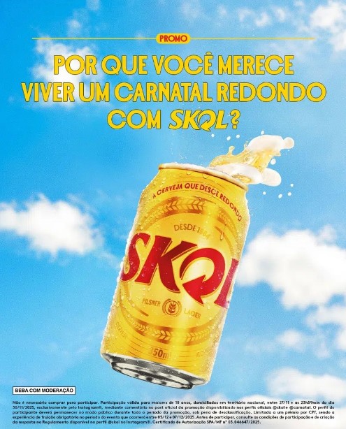 A primeira ativação acontece de 27 a 30 de novembro e vai premiar participantes com Abadá Skol, que garante acesso total ao evento Natal (RN), novembro de 2025 – O Carnatal vai ficar ainda mais redondo! Skol está oficialmente de volta à micareta como cerveja oficial, reforçando sua relação histórica com uma das maiores festas do país. Para marcar essa retomada, a marca, conhecida pela diversão … Continuar lendo Skol retorna como cerveja oficial do Carnatal 2025 e leva foliões para viver a experiência completa na micareta