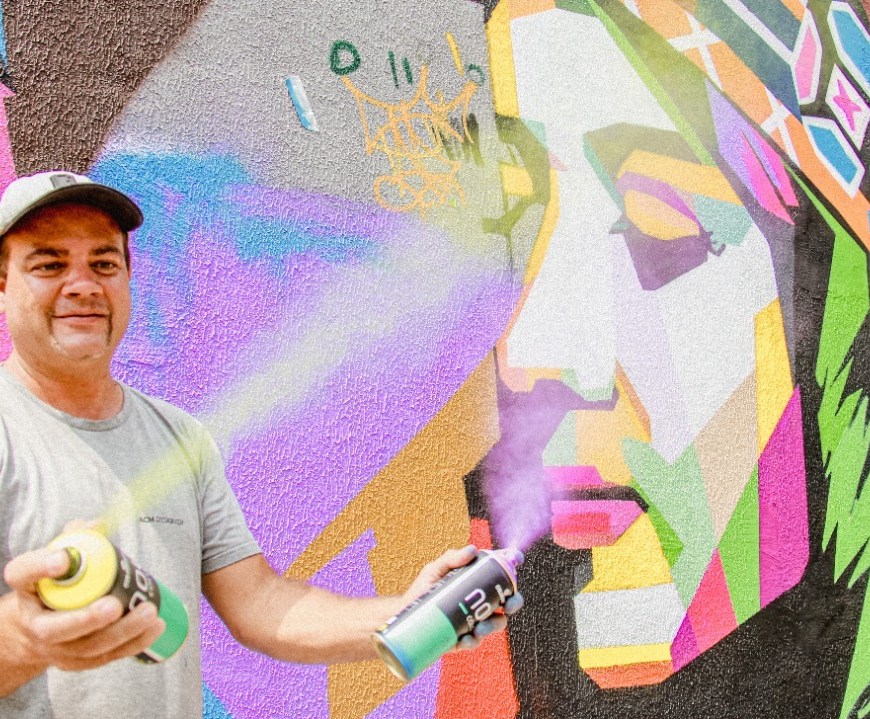 Artista daltônico faz painel de grafite na Câmara de Ribeirão Pires